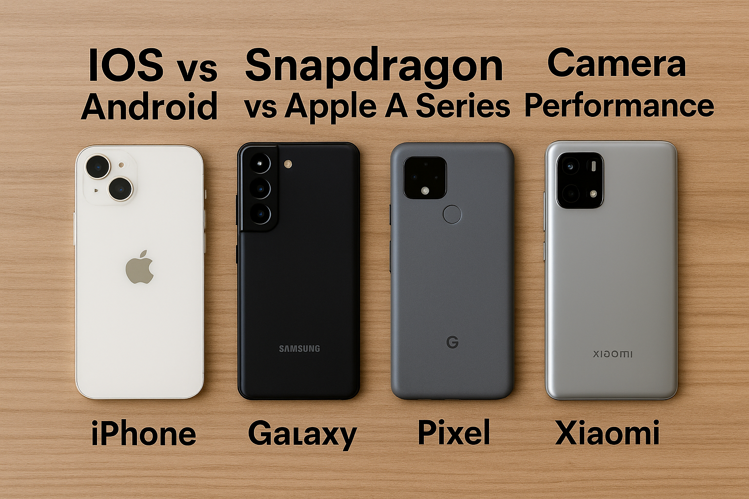 휴대폰 선택 시 OS(iOS vs Android), CPU/칩셋(Apple A 시리즈 vs Snapdragon), 카메라 성능을 종합적으로 고려해야 한다.