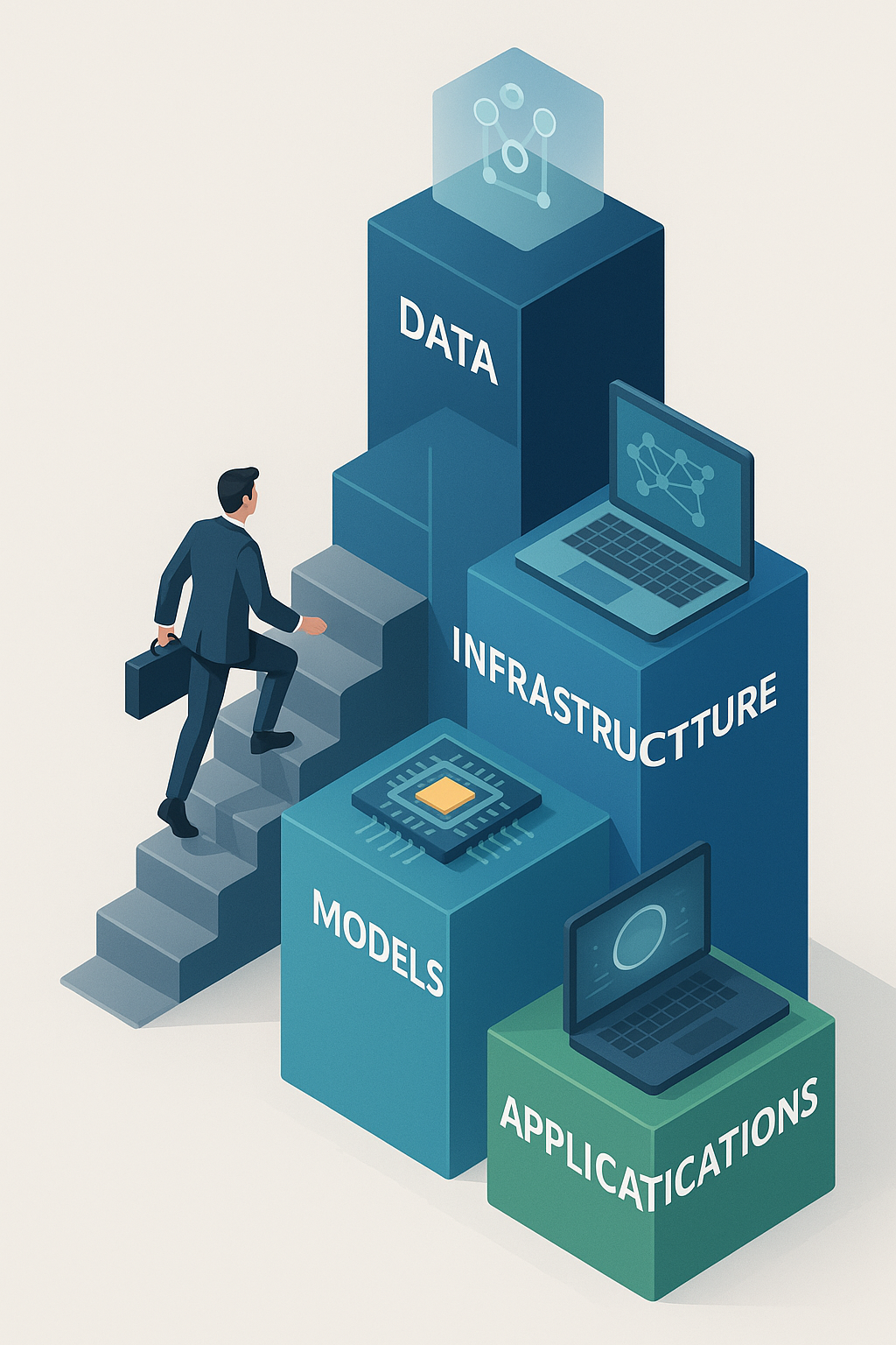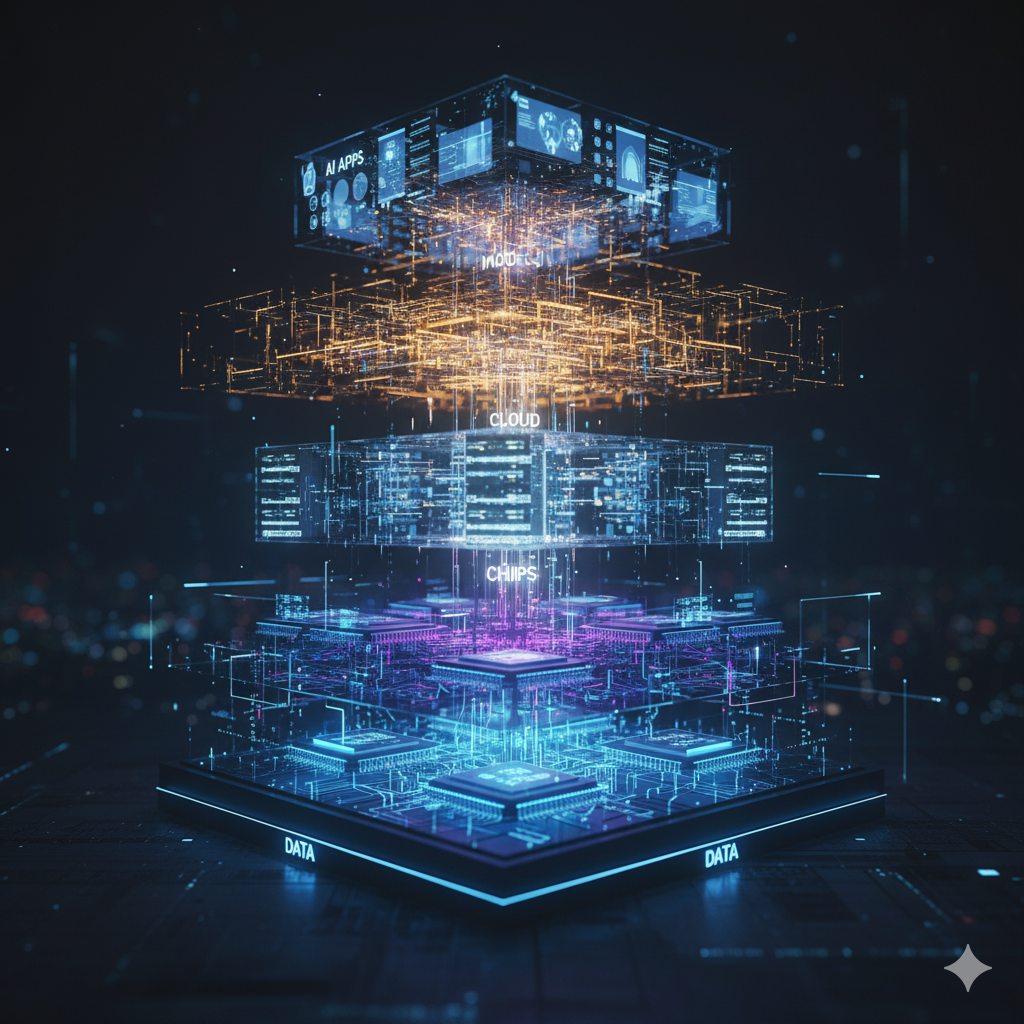 AI는 데이터 → 칩 → 인프라 → 모델 → 서비스로 이어지는 거대한 수직계열 구조를 형성했다.