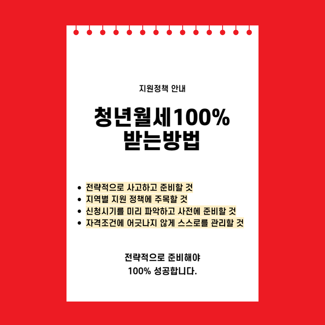 좋은 제도가 있어도 전략과 준비 없이 급하게 활용하고자 하면, 어떤 식으로든지 장벽에 부딪치기 쉽습니다. 반드시 사전에 전략적으로 사고하고 치밀하게 준비하시기 바랍니다. 특히 청년월세지원 등은 경쟁이 심하기 때문에 전략적으로 준비한 이들만이 얻을 수 있습니다.